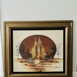 Vintage mid-century modern cityscape Original Oil Painting by artist Eduardo Oropeza $60$60Wheaton, IL