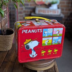Vintage 1965 PEANUTS RED METAL LUNCH BOX SNOOPY CHARLIE BROWN -No Thermos $35Crystal Lake, IL