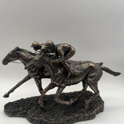 TWO JOCKEYS HORSE RACING COLD CAST BRONZE FIGURINE. Length: 12.5” Height: 7.5”$50Niles, IL