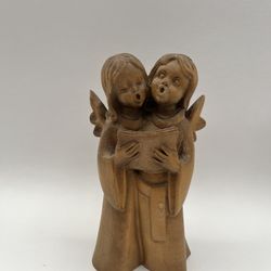 Wooden Carved Figurine Of Two Angels Or Choir Children Singing. CONRAD MORODER-ITALY. Height: 7.5”$19Niles, IL