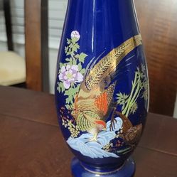 Vintage Cobalt Blue Pheasants Ceramic Vase