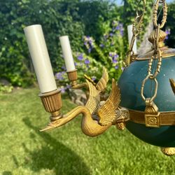 Stunning Vintage French Empire Style Chandelier - Green Tole & Brass Swan Motif$995Niles, IL