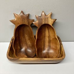Handcrafted Monkey Pod Pineapple Bowl Set Of 3 - Excellent Condition$15Chicago, IL