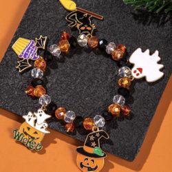 1 pc halloween evil pumpkin lantern and black cat beaded glass bracelet $15Forest Park, IL