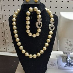 Vintage Knotted Faux Pearl Necklace, Earrings And Bracelet Set With Heart Clasp$40Lombard, IL