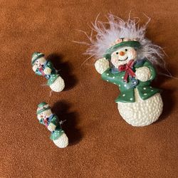 1990's Vintage Enamel Gold ToneSnowman Brooch and Earring Set$15Mount Prospect, IL