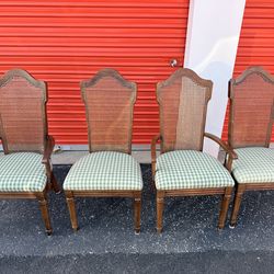 2 Drexel Heritage Accolade Collection Rustic European Cane Back Dining Arm Chairs -Beige and Brown Stripped Upholstery $200Romeoville, IL
