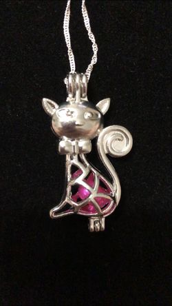Silver plated Cat pearl charm with a Pink colored pearl and sterling silver necklace . $10 and $3.50 shipping . Payment with Credit Card PAYPAL . Or$10Norridge, IL