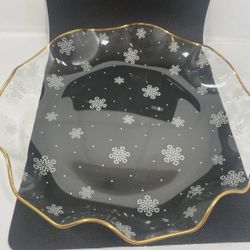 Vintage Dorothy Thorpe Sinclair Glama Glass Snowflake Bowl Dish Gold Trim rare find $40Chicago, IL