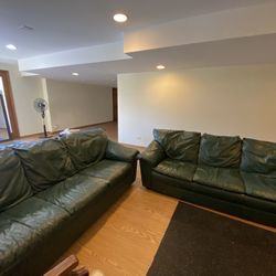 Two Matching Genuine Leather Dania Couches – Turquoise – Good Condition – $450 for Both $450Naperville, IL