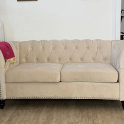 Velvet Beige Tufted Loveseat Sofa -less than 6 month old$80Chicago, IL