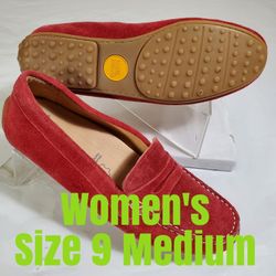 New Women's Size 9 Medium Shoes Samuel Hubbard Suede Slip-on Moccasins Red$125Chicago, IL