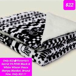 $22🌸 Victoria's Secret VS Pink Black 🖤 & White 🤍 White Winter Peace Sherpa Blanket. Brand New. $22 !!$22Plainfield, IL