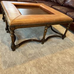 Honquest Leather Wood Large Square Coffee Table Brown Removable Trays $200Palatine, IL