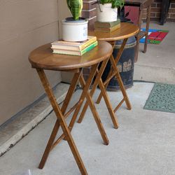 Vintage Mid Century Modern TV Tray Set of Two Oak Tables$50Crystal Lake, IL
