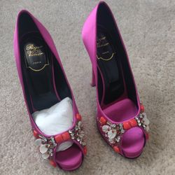 New In Box Roger Vivier Satin Embellished Peep Toe Heel Pumps Size 36$200Lemont, IL