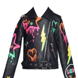 Hannah Banana by Baby Sara Graffiti Moto Faux Leather Jacket Size 3T$70Lake Zurich, IL