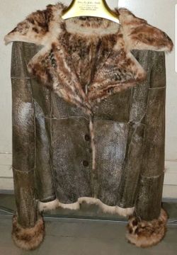 NEW Animal Print Rabbit Fur Double Sided Tanned Leather Jacket L Receipt$389Barrington, IL