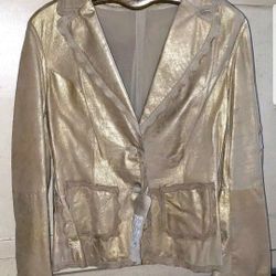 NWT $1600 Gold Lambskin Leather Jacket Blazer 48 12$425FOX RV VLY GN, IL