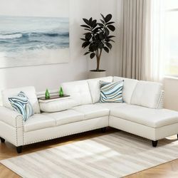 Whites Faux Leather Sectional Sofa Bed 118"$300Willowbrook, IL