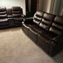 Brown Leather Reclining 3 Pc Sofa Set $475Chicago, IL