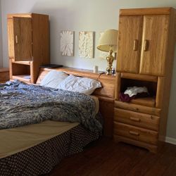 Queen size bed oak wood w dresser & mirror$450Burbank, IL