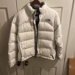 Women’s North Face Puffy Winter Jacket Size M White Exterior And Grey Interior! $80Elmhurst, IL