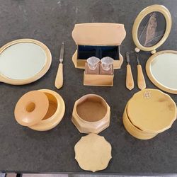 Celluloid vintage vanity French cream dresser set 1920 mirrors perfume bottles jewelry box 12pcs$40Lake Barrington, IL