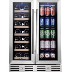 24 Inch Wine and Beverage Fridge, Wine Refrigerator Dual Zone Hold 20 Bottles and 78 Cans,Built-In or Freestanding Digital Touch Control$550Naperville, IL