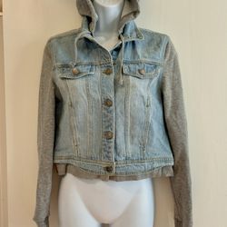 Seventeen Brand Jean Jacket Hoodie Medium Blue Gray Cotton Sweat Shirt Button$16Worth, IL