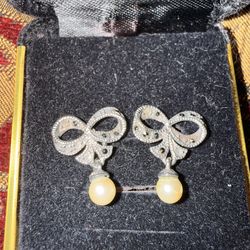 Classic Bow Pearl Drop Earrings - Silver and Cream$15Chicago, IL