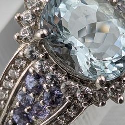 R11💍💎 Aquamarine & Tanzanite Halo Ring – Platinum Over Sterling Silver (.925)💙$65Oak Park, IL