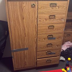 Tall wooden cabinet w/drawers and shelves$190Skokie, IL