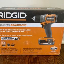 RIDGID 18V SubCompact Brushless Cordless Drill/Driver Kit with 2 Ah Battery and Charger$80Homer Glen, IL