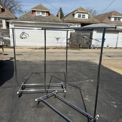 HEAVY DUTY ROLLING CLOTHES RACKS. 48 BY 60 INCHES. THEY CAN BE ADJUSTED TO 3 DIFFERENT HEIGHTS. WE HAVE 20 UNITS . $40.00 EACH OR BEST OFFER.$40River Grove, IL