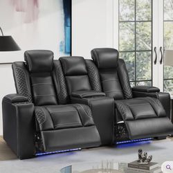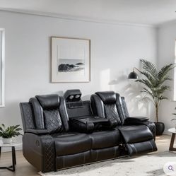 Black leather couch - reclining - LED lights - charging ports - cup holders -storage compartments$1,500Chicago, IL