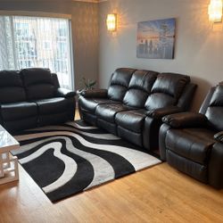 3 Piece Black Faux Leather Living Room Set$400Des Plaines, IL