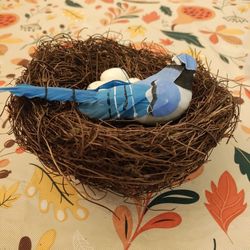 6" Rattan Birds Nest With A Faux Blue Jay & Eggs $26Lansing, IL