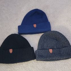 3 Black, Blue And Gray Coach Mens Winter Hats, Made From 100% Wool With Cow Leather Trim. (MUST SELL TODAY)$100Hanover Park, IL