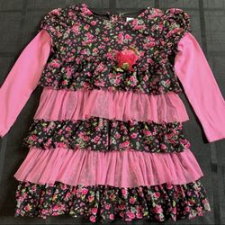 Sweet Heart Rose girl size 5 floral-print, long-sleeve tiered ruffled dress, featuring alternating layers of patterned fabric and pink tulle$12Stickney, IL