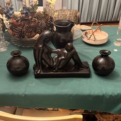 Vintage Haeger Black Gloss Pottery Set - 4 Pieces (Figurine + Vases + Pitcher)$150Chicago, IL