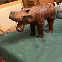 Vintage Mid-Century Leather Hippopotamus Figurine - Dimitri Omersa Style - Quirky Safari Decor!$100Chicago, IL