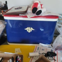 Vintage 1950s Ice Chest Cooler Blue Red White Gold Eagle Emblem Urethane Foam USA Patriotic MCM$49Bloomingdale, IL
