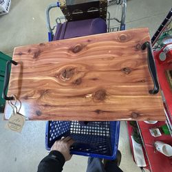 cedar charcuterie board or serving tray with black handles. The wood is likely Eastern Red Cedar due to its distinctive reddish-brown color with swirl$65Naperville, IL