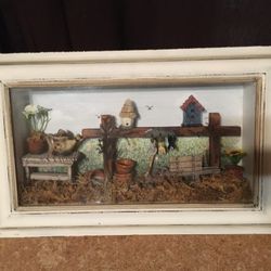 Vintage Garden Shadow Box Diorama Miniature Spring Scene In Distressed Frame$40Chicago, IL