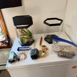 Vtg Aquarium Set 2-2 Gal Clear Acryllic 6 Sided Tanks 2 Bubblers Top Light with 2 Nulbd 5 Pounds Gravel$80Bolingbrook, IL