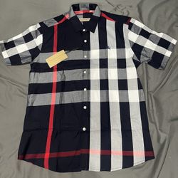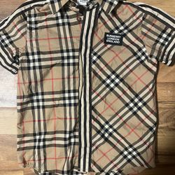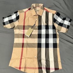 Burberry Boys Plaid Button-Up Shirt Short Sleeve Beige Black Red Size 6Y 116cm$100Calumet Park, IL