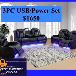 💥FREE DELIVERY💥Brand New POWER, LED, USB 3PC Reclining Sofa Loveseat Chair Set$1,650Ind Head Park, IL