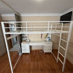 Full White Size Loft Bed with Desk and Drawers$120Des Plaines, IL