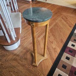 Bombay Company round green marble top plant stand with a wood base and brass medallions$40Palos Heights, IL